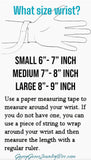 - When ordering please make sure to add 1/2 inch to your wrist size for a comfortable fit.