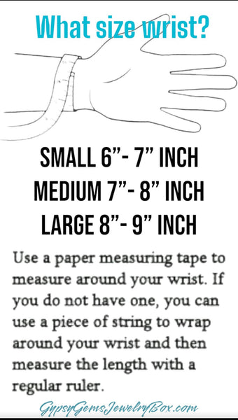 This bracelet is proudly made in the USA 🇺🇸 and follows Fair Trade practices. Discover your perfect fit with Gypsy Gems Jewelry Box custom sizing options. Embrace vibrant energy with our high-quality, natural gemstone crystal beads.